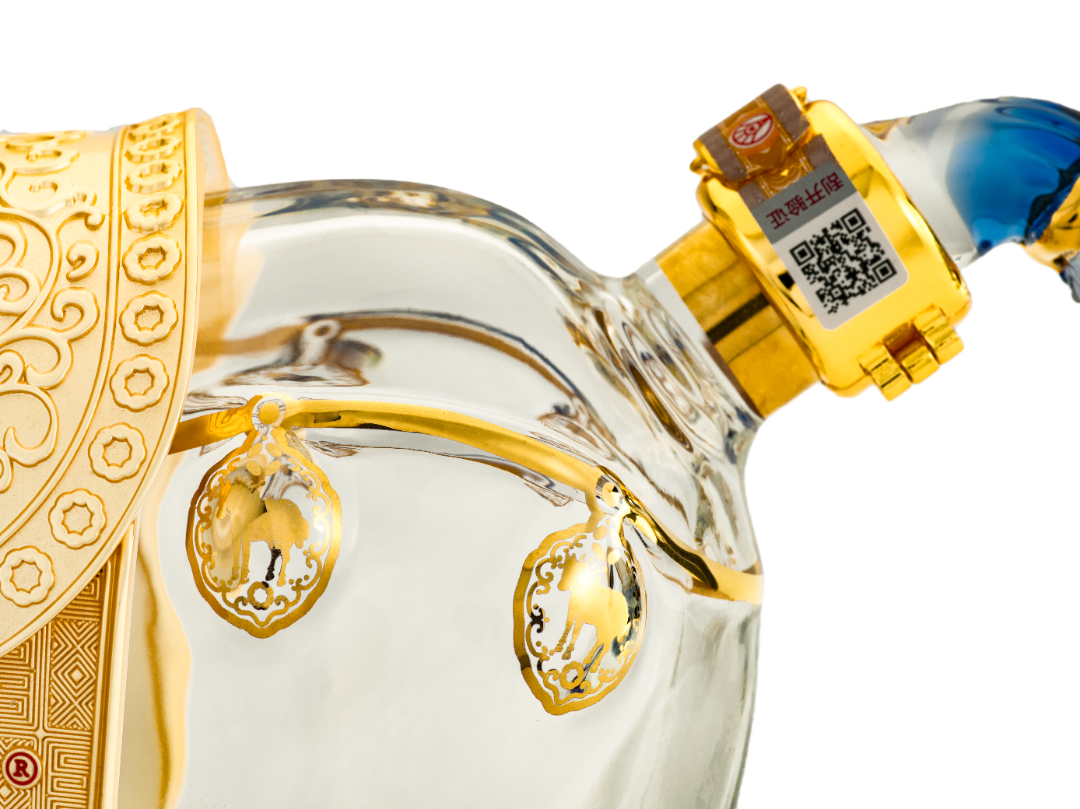 细节处更见真章。瓶身鬃毛的五花样式,是唐代最高等级马匹的象征,正如李白笔下“五花马、千金裘,呼儿将出换美酒”,让这份尊贵有了千年文学注脚;马鞍上宝相花与五谷纹的设计,既呼应了白酒酿造的五谷本源,又暗藏五福临门的祝福;外盒从左往右、从右到左都是相同的数字,形成“循环中的平衡”,更诠释了生生不息的东方哲学。
