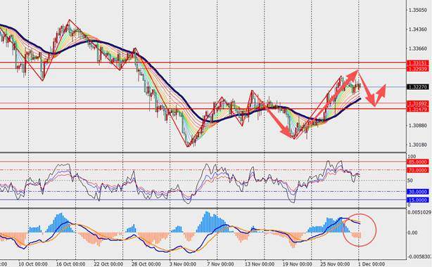 第一阻力位:1.3280 第一支撑位:1.3170
