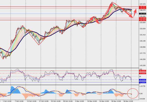 第一阻力位:156.30 第一支撑位:154.70