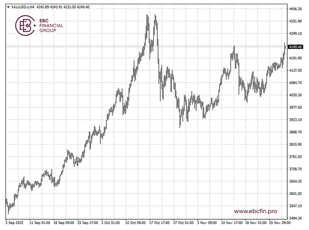 黄金已突破11月13日触及的4245美元高点,预计价格将在短期内进行盘整,随后继续上行。