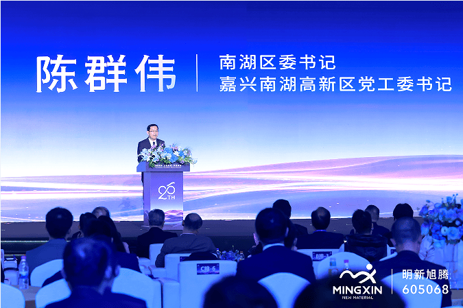 庆典现场宾客云集,思想与情感交织碰撞。南湖区委书记、嘉兴南湖高新区党工委书记陈群伟在致辞中回顾了明新旭腾二十年峥嵘岁月,盛赞了企业在汽车内饰材料领域的卓越贡献。他提到,作为南湖高新区培育的标杆企业,明新旭腾不断以技术创新突破瓶颈,用绿色生产践行责任,不仅实现自身稳健成长,更带动了区域产业链协同发展,为地方经济注入强劲动力。