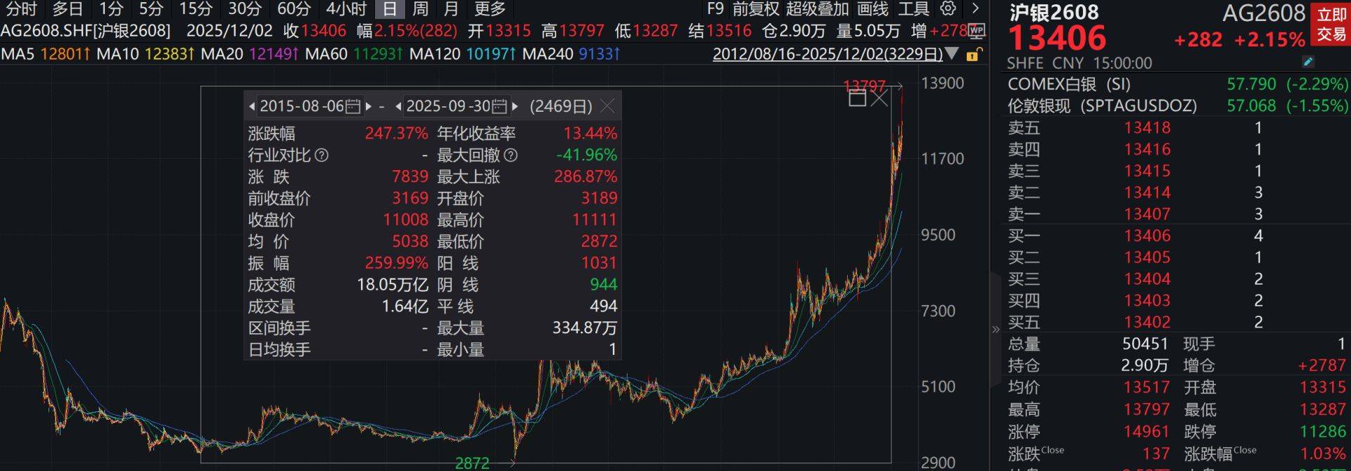 参考沪银主力合约价格的变化波动,自该基金的成立日2015年8月6日算起,截至今年三季度末,普遍也有超200%的涨幅。国际白银主力合约的同期价格也呈类似波动。