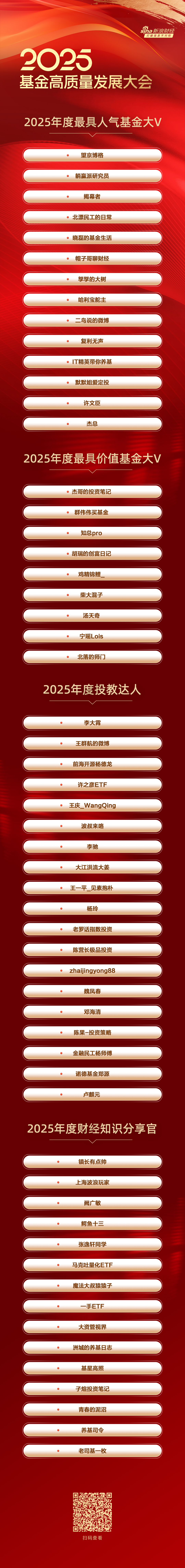 文章版权声明:除非注明,否则均为2025微博财经大V荣誉榜:望京博格、躺赢派研究员、揭幕者等获最具人气基金博主荣誉(全名单)原创文章,转载或复制请以超链接形式并注明出处。