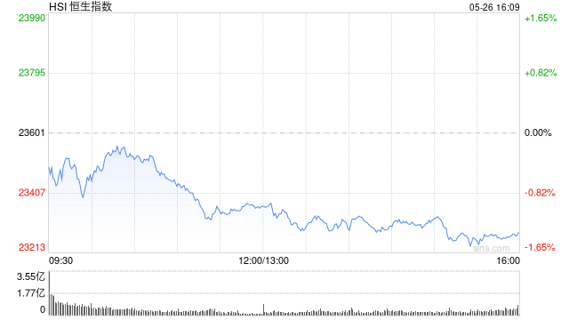 5月26日消息,港股三大指数低开低走,截至收盘,恒生指数跌1.35%,报23282.33点,恒生科技指数跌1.70%,国企指数跌1.70%。盘面上,科网股普跌,美团跌超5%,小米集团跌超3%,联想集团跌超2%,腾讯控股、百度集团、京东集团、阿里巴巴跌超1%,哔哩哔哩涨超1%;加密货币概念股大涨,博雅互动涨超12%;核电股强势,中核国际涨近130%;汽车股持续走低,比亚迪(002594)股份跌超8%。