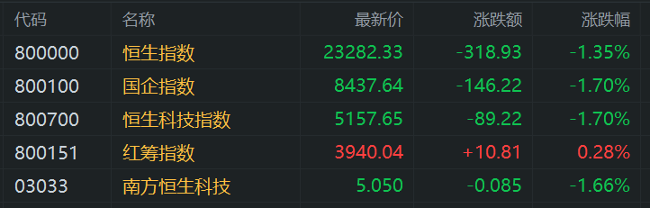 格隆汇5月26日|港股三大指数集体下挫,恒生科技指数一度大跌至2%,最终收跌1.7%录得3连跌行情,恒生指数、国企指数分别下跌1.35%及1.7%,市场情绪表现低迷。