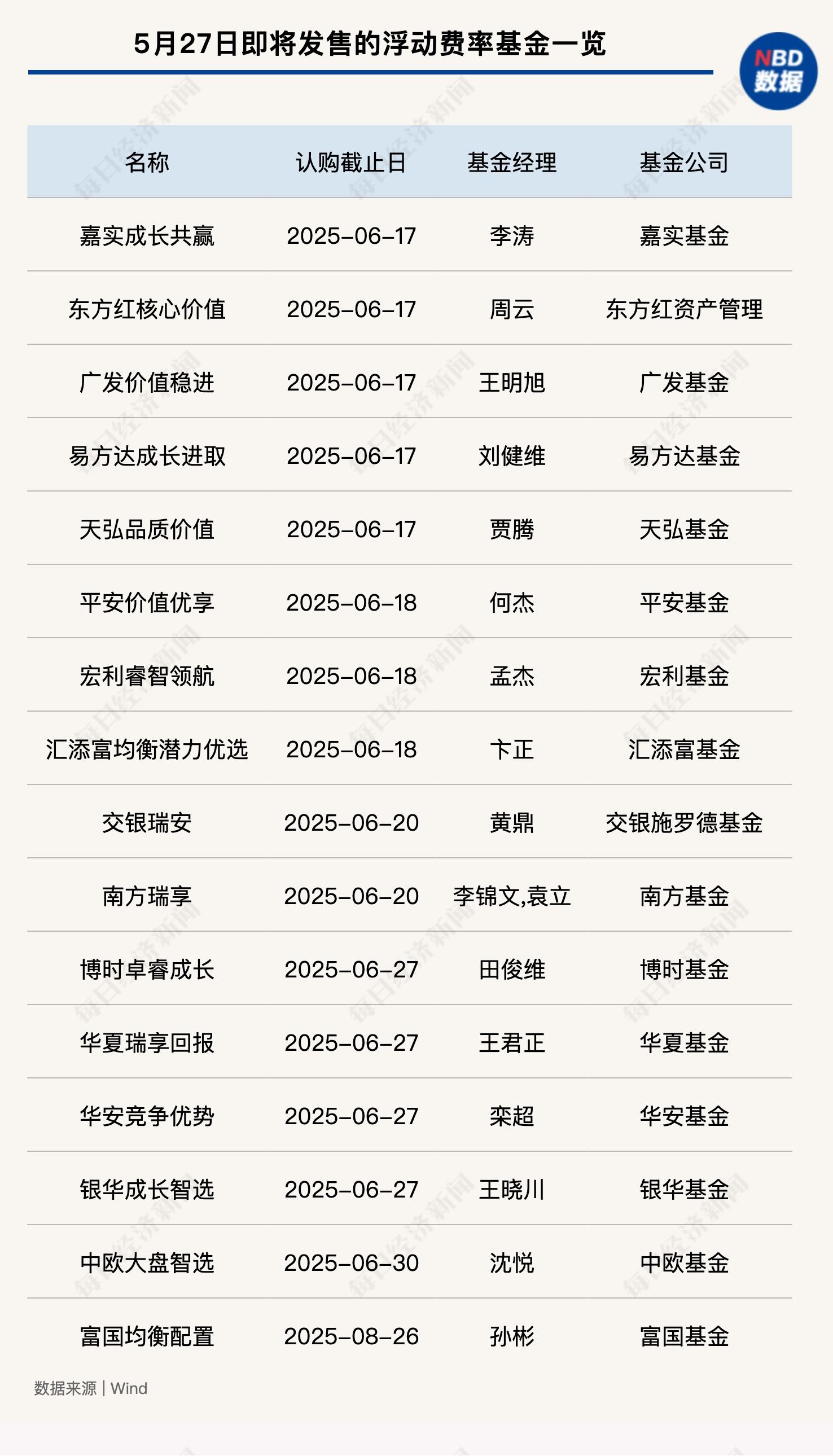 5月27日,公募基金又将出现一批基金同时开售的景象,不同的是,这次的产品是浮动费率型基金。