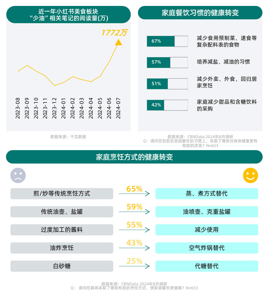 现代厨房正经历从基础烹饪向精准营养管理的转型。当下,我国居民油盐摄入量远超建议值,油炸、长时间高温烹饪产生的有害物质,日积月累增加慢性疾病风险。调查显示,60%消费者担忧烹饪时油盐用量,55%顾虑不当烹饪方式危害健康,近六成消费者主动减盐减油,“少油”烹饪在社交媒体热度飙升。