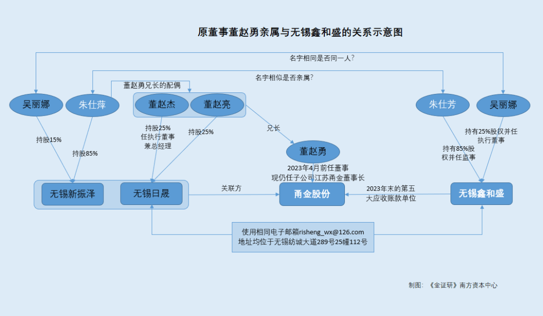 3.4 无锡鑫和盛现身为2023年应收账款单位,与董赵勇亲属控制的企业共用联系邮箱
