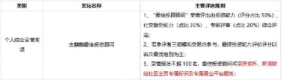 (注释:详细参评规则及评分规则请见《【评选规则】第二届金麒麟最佳投资顾问评选》,请添加主办方企微获取详细参评规则)