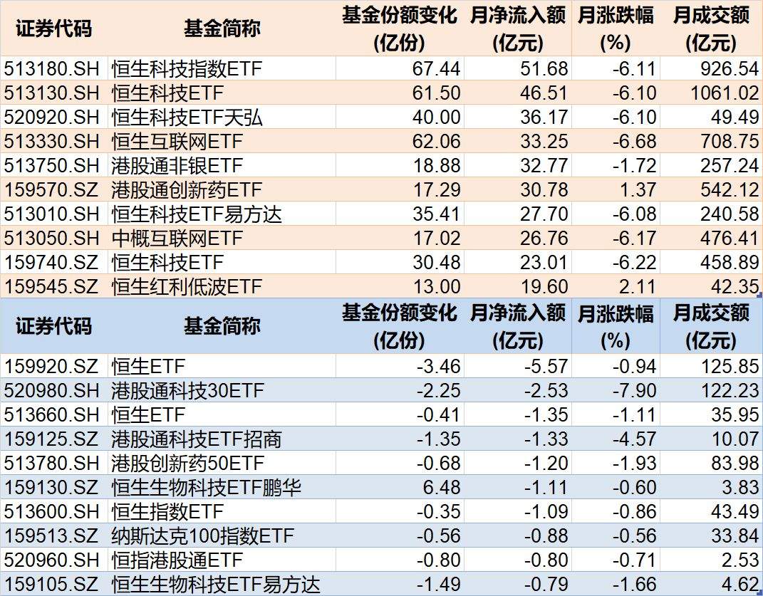 另外,沪深300ETF易方达、上证50ETF本月净流出超20亿元。