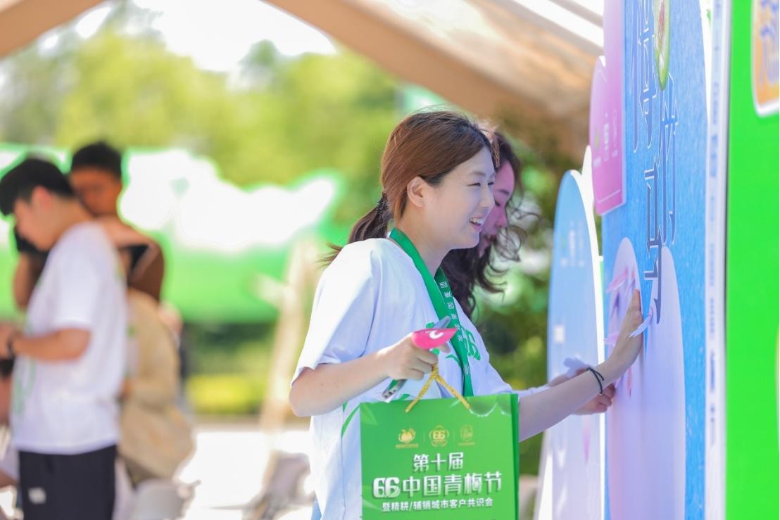 今年6・6中国青梅节现场,青梅的这些价值被具象化为十项沉浸式互动内容:从“青梅煮酒”的手作体验,到“青梅竹马”告白墙的社交互动,再到“芒种品梅”的酸爽挑战与“暴力梅击”的游戏互动,每一个环节都让参与者在“玩”的过程中重新感知这颗小果子的魅力。青梅不再只是古书里的意象,也不仅是零食包装上的符号,而是以触觉、味觉、情绪全面介入当下年轻人生活的文化媒介。