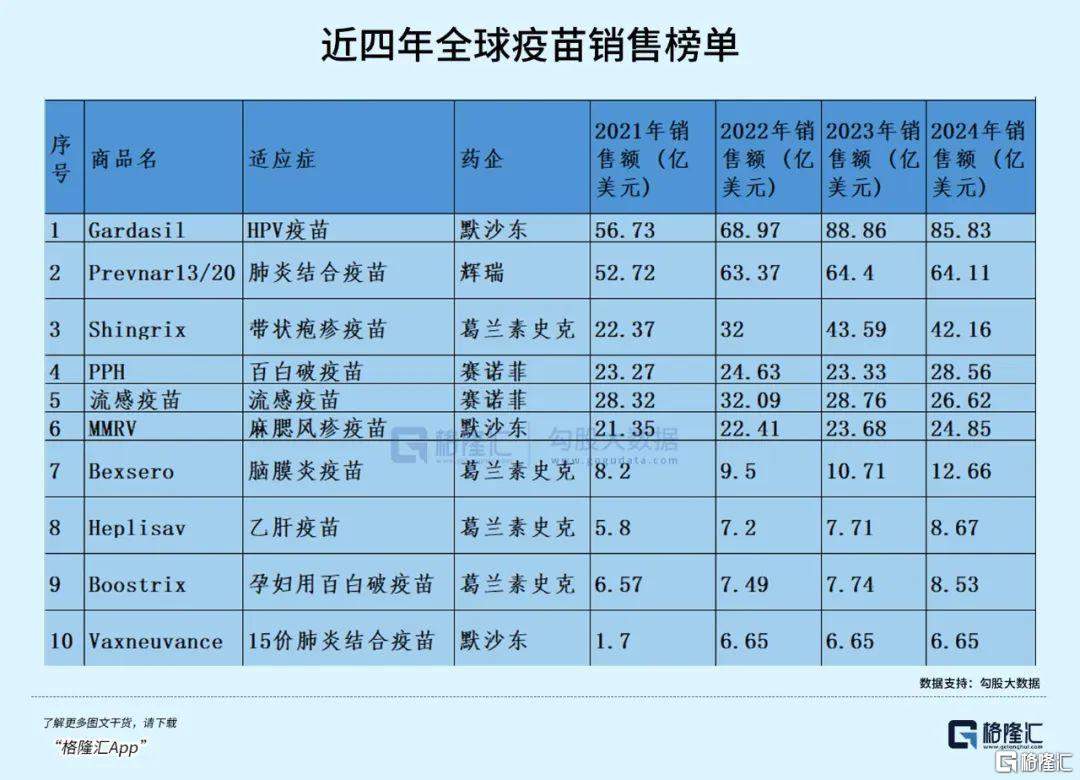 公开数据统计,在近几年全球疫苗销售榜单中,HPV疫苗位居榜首,充分印证了其市场热度以及庞大的市场潜力和需求空间。