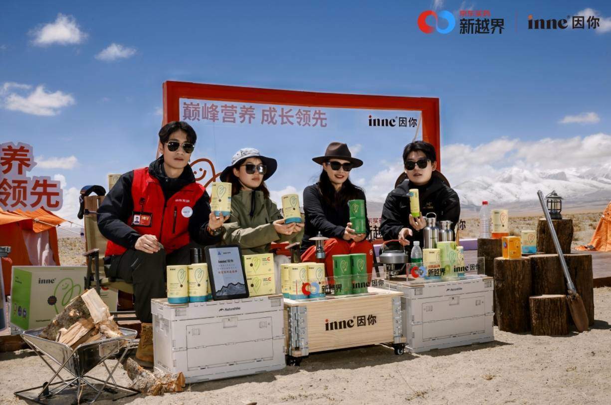 就在登山队正式向珠峰发起冲击前,inne®品牌还曾联合京东买药新越界,于海拔4300米的西藏珠穆朗玛峰岗嘎镇观景点,进行了一场震撼业界的巅峰直播。以雪山为背景,以冰川为讲台,inne®因你邀请队长那木错做客直播间,向观众详细解析了少年登顶珠峰所需的专业素养与面临的极限挑战,并展示两款与游美青少年登山队联合推出的inne®珠峰定制礼盒。