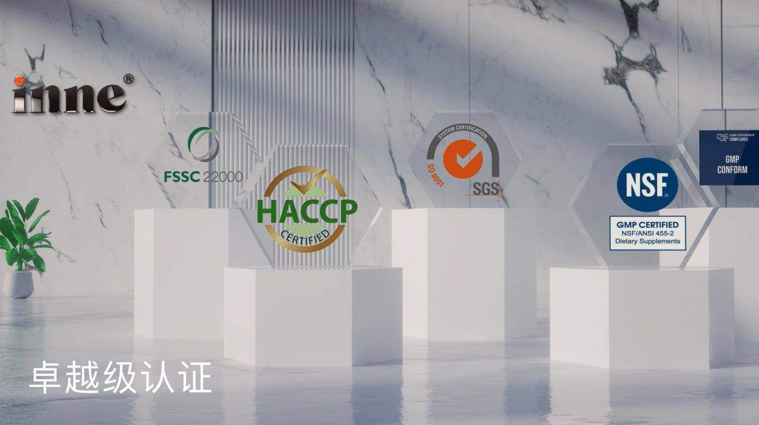 inne®因你产品经过SGS、GMP等权威机构安全认证
