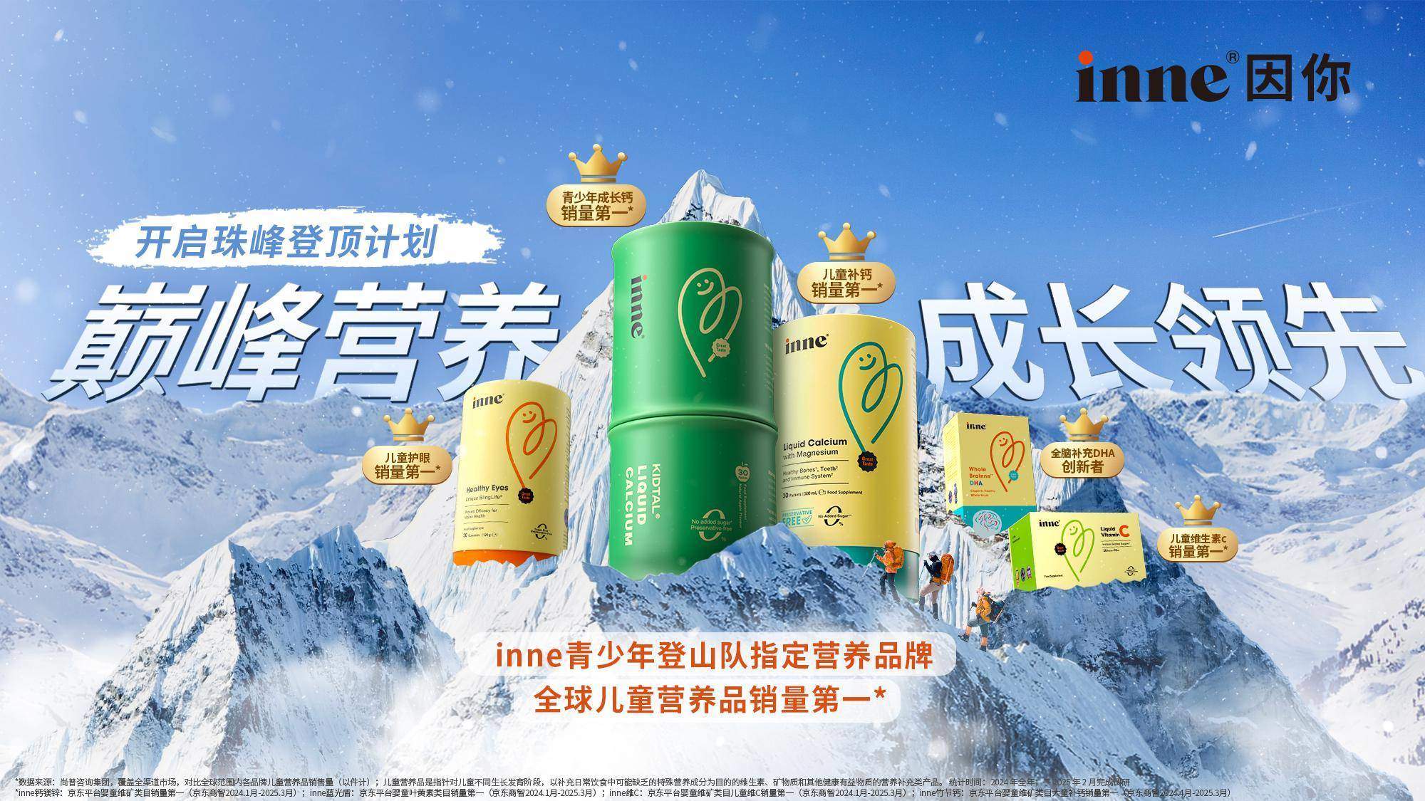 作为全球儿童营养品销量第一的品牌,inne®因你始终以“为全球儿童打下一生健康的基础”为使命,在全球版图上践行对儿童全面成长发展的深度关怀。在德国,inne®与Waldkicker青少年森林足球锦标赛同行,以营养之力守护少年驰骋绿茵的勇气;在中国,inne®携手现役女篮运动员杨舒予发起“同一高度起跳”公益计划,为云南山区孩子点亮篮球的梦想星火,赋予他们向上的力量;而今,inne®携手游美青少年登山队挑战珠峰极境,以“巅峰营养”标准护航少年征服世界之巅。每一次跨越地域与领域的携手,都是品牌对“成长无界”信念的生动注解:以科学为基石,以创新为引擎,为全球儿童筑造坚实的成长阶梯,让每个孩子都能在营养护航中突破边界,攀登属于自己的人生“新高度”。