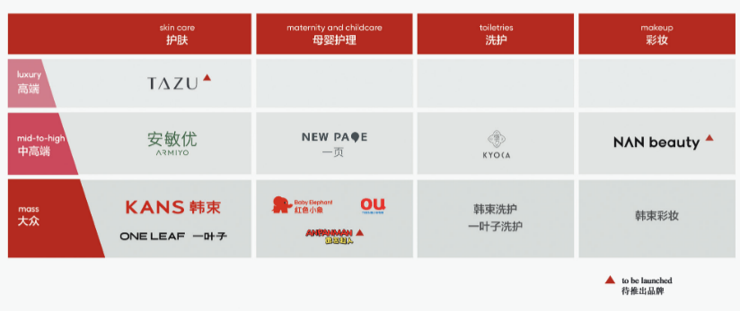 上美股份旗下主要有四大品牌,分别为韩束、一叶子、红色小象和newpage一页。2024年,上美股份的“一超多弱”格局在2024年进一步强化:韩束作为核心引擎的依赖度攀升至82%,而第二梯队品牌体量差距悬殊。
