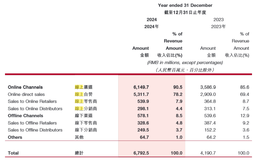 除了品牌上过度依赖韩束外,在渠道方面,上美股份或仍是一个偏科生,过度依赖线上渠道,特别是抖音渠道。