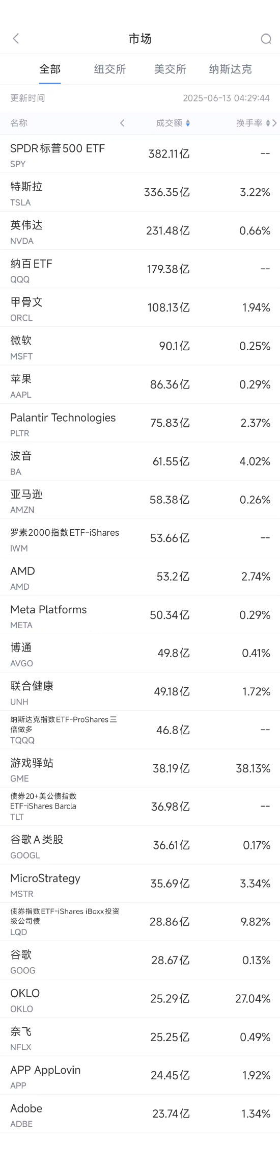 周四美股成交额第1名特斯拉收跌2.24%,成交336.35亿美元。马斯克11日向特朗普道歉,称自己的帖文“太过了”。白宫同日表示,特朗普对这一道歉表示赞赏。白宫还称,美国政府仍未中止与马斯克的合同。