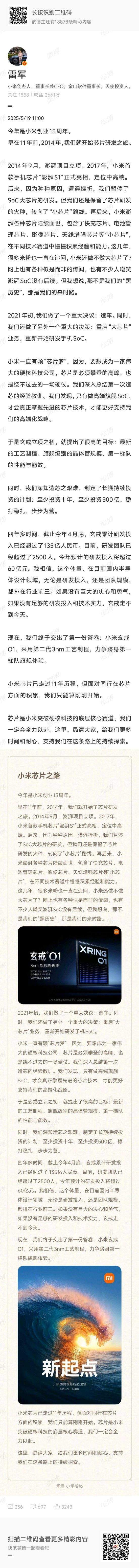 文章版权声明:除非注明,否则均为小米董事长兼CEO雷军谈小米SoC大芯片:不少人嘲笑澎湃SoC没有后续!那不是“黑历史”,那是来时路原创文章,转载或复制请以超链接形式并注明出处。