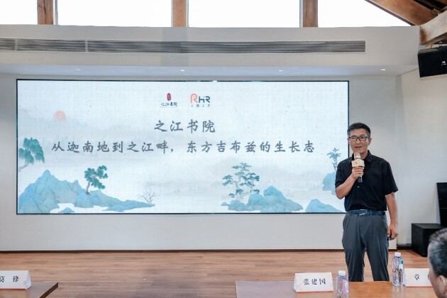 人瑞人才创始人、执行董事、主席兼行政总裁张建国在现场回顾之江书院的历程,它起源于人瑞人才管理团队2018年的一次以色列考察行程,当时深度考察了基布兹,这是以色列一个非常和谐的社群。“当时我们就想,我们希望能有这么一个地方,大家在一起能很努力地工作,也能很快乐地生活。2018年从以色列回来后,我们就一直在寻找这个地方,一次偶然的机会在余骏会长的引领下,我们来到了之江村,这里浓厚的人文精神和美丽的自然环境让我们一见倾心,非常感谢余骏会长的引领。同时非常感谢蔡新春书记,我们在筹建过程中遇到很多困难和问题,最关键的时刻蔡书记拍板解决,才有了我们这样一个缘分。”