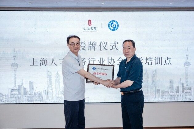 在活动现场,朱庆阳秘书长代表上海人才服务行业协会授予之江书院上海人才服务行业协会研学培训点。