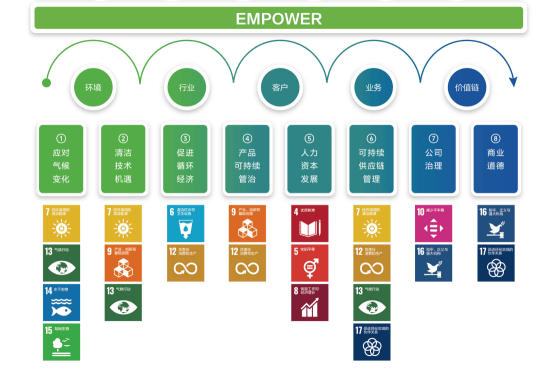 深耕电力新能源行业数十年来,正泰始终将ESG理念深度融入产业链全生命周期。在正式对外发布的“正泰集团2030可持续发展战略”中,战略明确了包含"应对气候变化、清洁技术机遇、促进循环经济、产品可持续管治、人力资本发展、可持续供应链管理、公司治理、商业道德"等在内的八大关键行动目标。