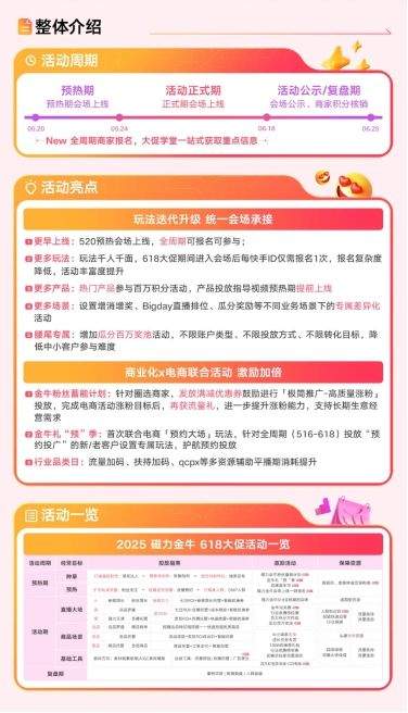 年中大促即将火热来袭,商家如何乘势而上抓住流量高峰,通过高效投放带动生意增长?2025磁力金牛618活动玩法发布,以玩法升级、激励加倍,助力商家高效备战大促,引爆全域生意。