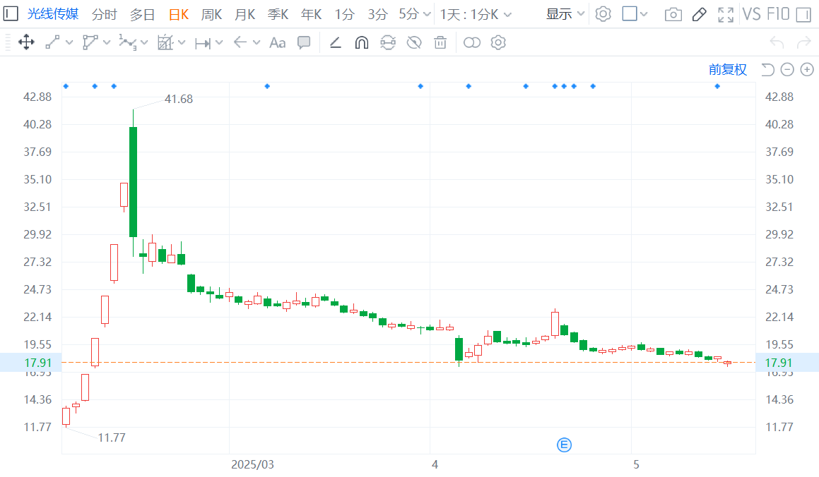 文章版权声明:除非注明,否则均为光线传媒跌逾4%,股价创约一个半月新低!哪吒2票房创纪录,股价一度到41.68元,如今跌至17.6元原创文章,转载或复制请以超链接形式并注明出处。