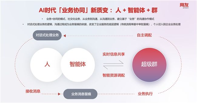 传统业务协同多依赖流程单据审批留痕,如今,对话式处理业务逻辑兴起。人与人、人与智能体对话中处理业务,沟通环节成为业务留痕依据,进而推动业务执行。智能体宛如得力助手,能理解人的指令,辅助完成诸多任务。
